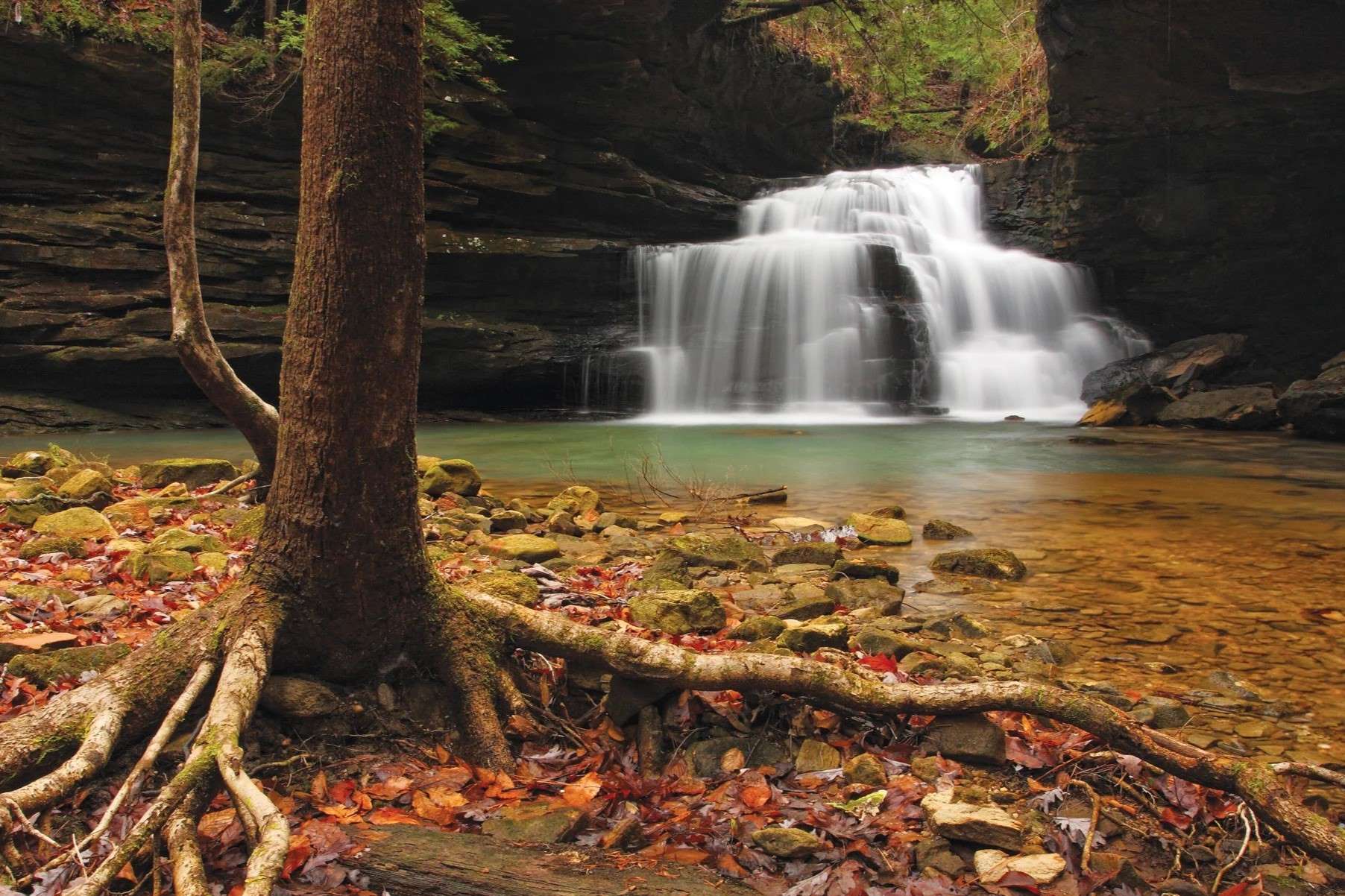 Hidden deep within the forest, Caney Creek Falls offers a more secluded experience. The waterfall's two-tiered drop into a clear pool is a sight to behold. It's a perfect spot for those who love a good hike and a bit of solitude.