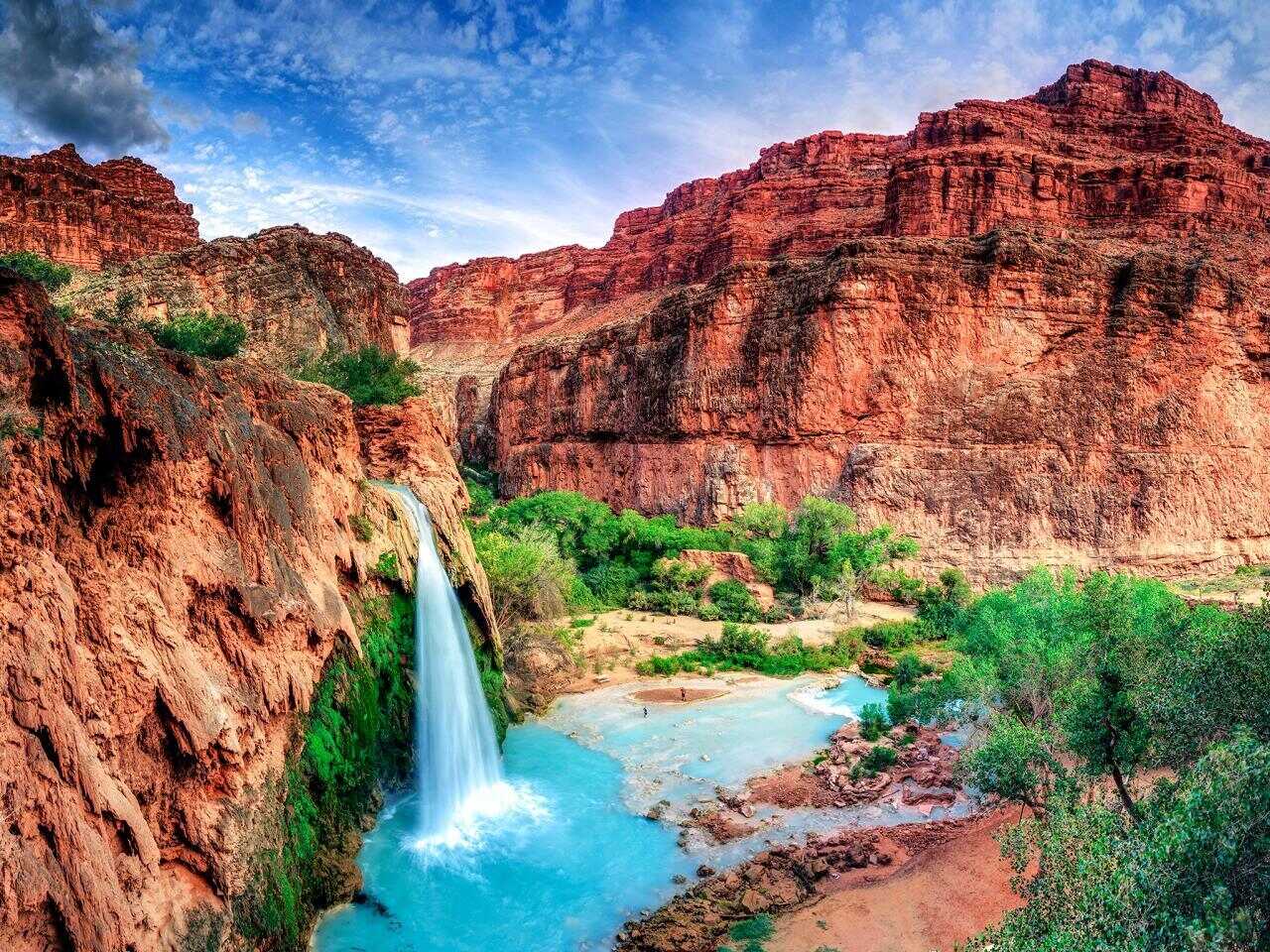 Hidden deep within the Grand Canyon, Elves Chasm is a magical oasis. Its emerald pool and cascading waterfall create a serene atmosphere, perfect for a quiet escape.Havasupai Springs