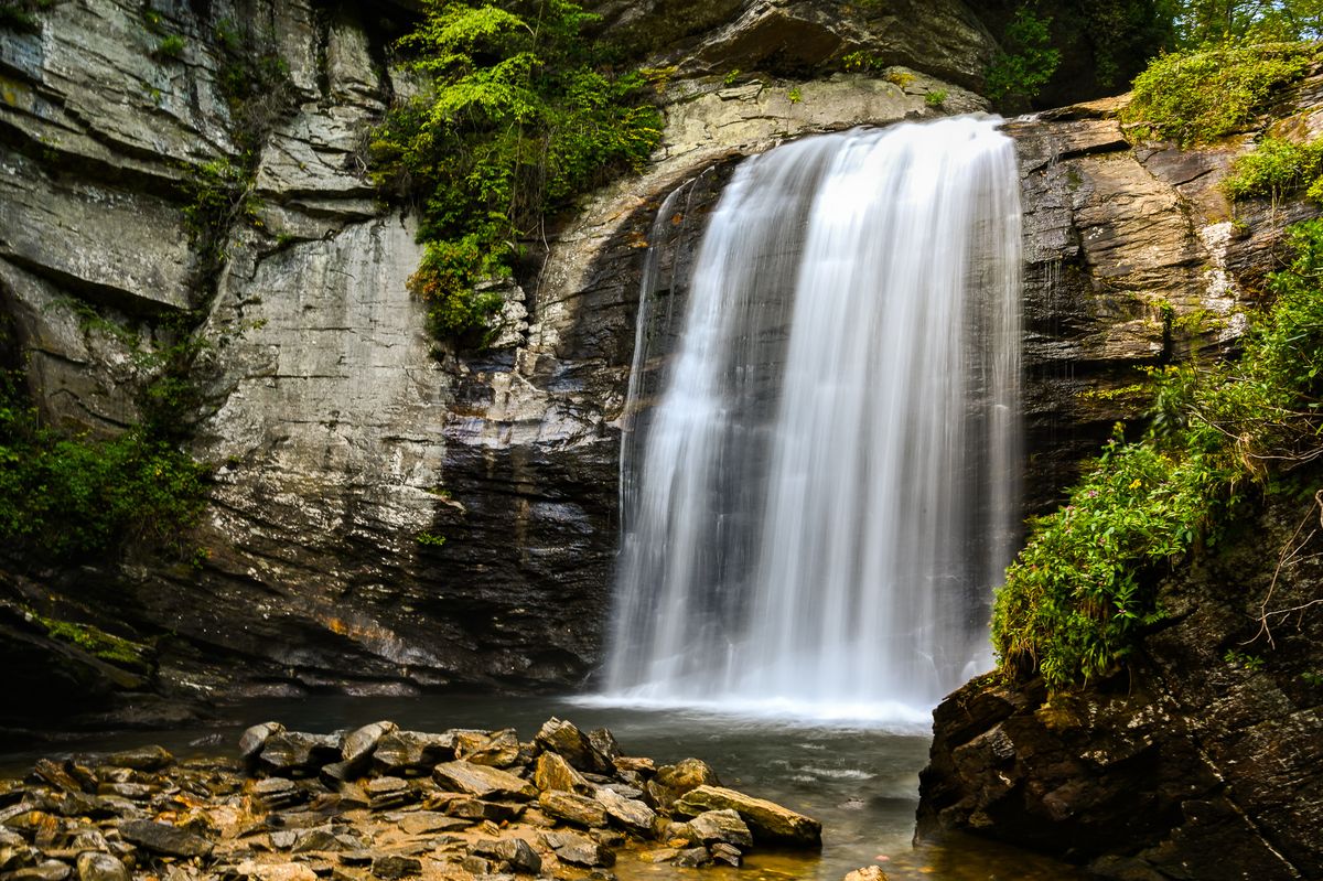 Easily accessible, Looking Glass Falls is one of the most popular waterfalls in the area. Its 60-foot drop creates a stunning visual, especially after a rainfall.Moore Cove Falls