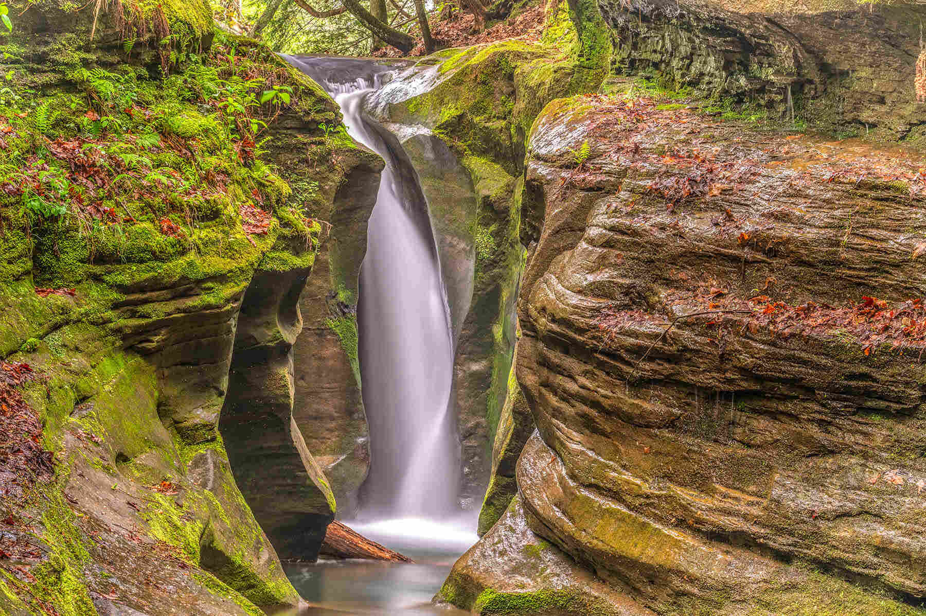 Known for its massive overhanging ledge, Ash Cave is one of the largest recess caves in Ohio. The sandy floor and trickling waterfall make it a peaceful retreat.