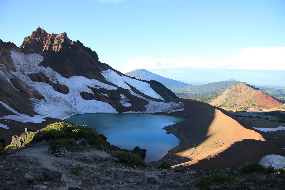 Nestled between South Sister and Broken Top, Green Lakes Camp offers a glimpse into history. Once bustling with activity, now only remnants remain. The serene lakes and towering peaks create a hauntingly beautiful backdrop.