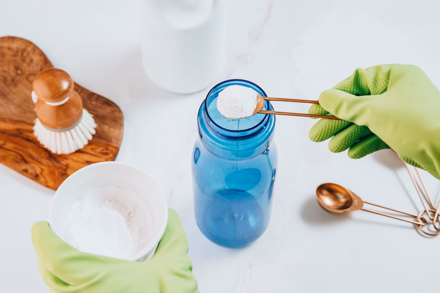 - Avoid using harsh chemicals: Stick to mild dish soap, baking soda, vinegar, or specific bottle cleaning solutions for cleaning your water bottle. Harsh chemicals can damage the bottle and leave behind residue.