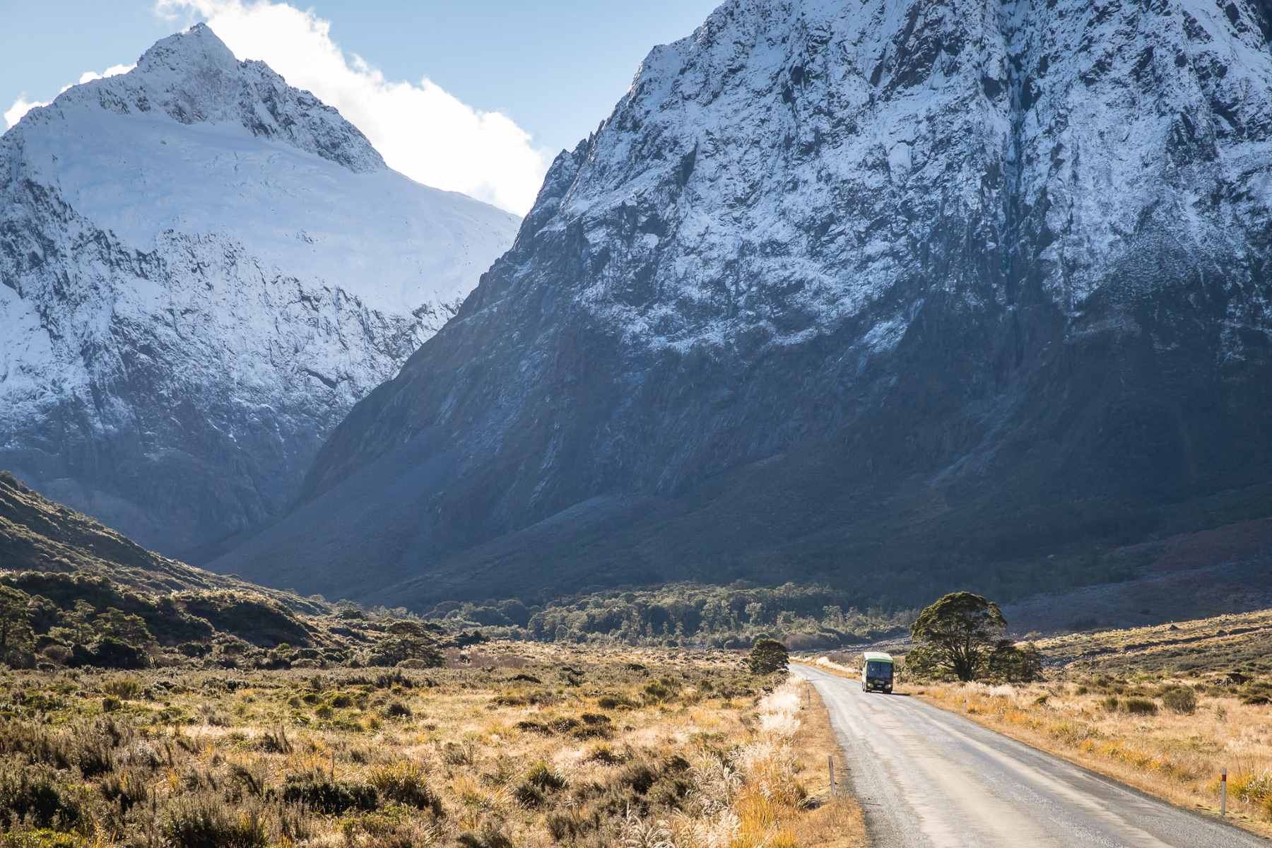 The scenic drive along Milford Road is a highlight of any day trip to Milford Sound. This 120-kilometer (75-mile) route takes you through some of the most breathtaking landscapes in New Zealand, offering awe-inspiring views at every turn.