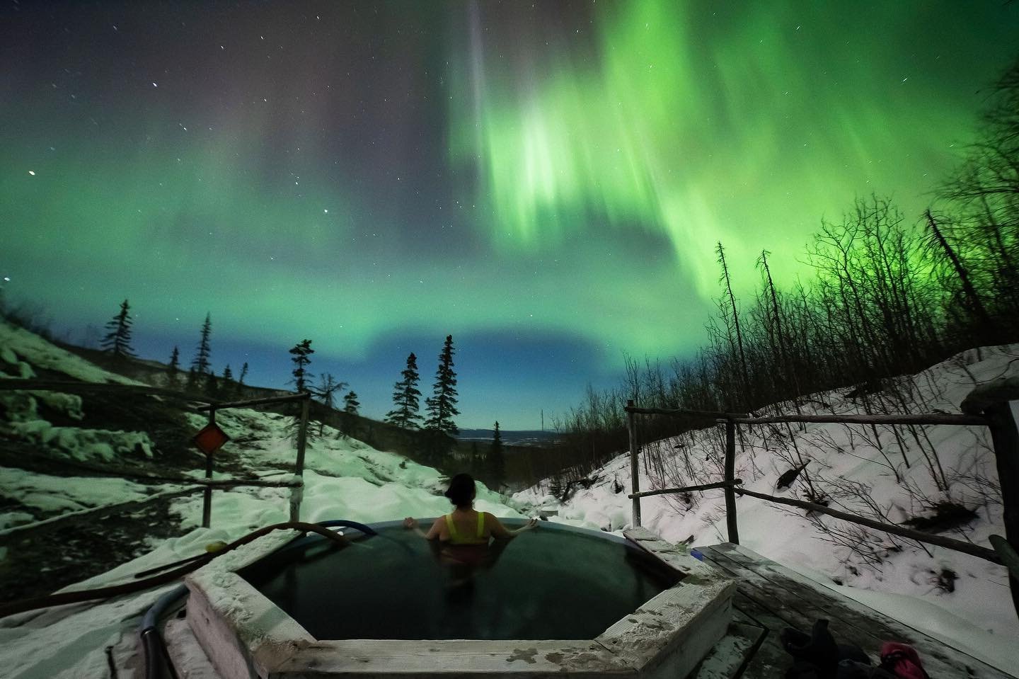 - Activities: Soaking in hot springs, dog sledding, Northern Lights viewing