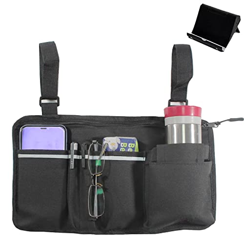 The ISSYAUTO Wheelchair Side Bag is a multifunctional and durable accessory for wheelchairs, walkers, rollators, and electric scooters. It features a spacious design with multiple pockets to carry essential items such as phone, wallet, pen, snacks, medications, and more. The bag also includes a cup holder for added convenience. Made from heavy-duty nylon, this bag is built to withstand everyday use and is easy to clean. With adjustable straps, it can be easily attached or removed from the wheelchair. Although some users have found the bag to be a bit awkward depending on the positioning and size of their wheelchair, it has received positive feedback for its quality construction and ample storage space.