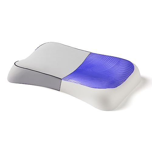 The Cooling Gel Cervical Neck Pillow by CushionCare is a specialty orthopedic pillow designed to provide the best sleep experience. It features a ventilated memory foam core and a removable cooling gel pad, helping to eliminate pressure points, headaches, and snoring. The pillow is made with high-quality memory foam that adjusts to your body's heat and weight for optimal support. Its unique design cradles your neck and head, reducing pain and promoting a comfortable night's sleep. The pillow is suitable for side, back, and stomach sleepers and comes with a luxurious outer cover in a modern white and blue mesh design. It also includes a free sutera sleeping mask and comes in a beautiful custom box, making it a perfect gift. Overall, this cooling gel cervical neck pillow is a top choice for those seeking pain relief and enhanced sleep quality.