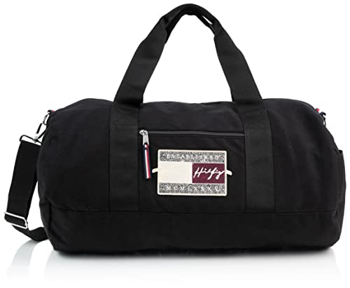 The Tommy Hilfiger Signature Duffle Bag in TH Deep Black is a versatile essential for any traveler. With its zipper closure and double handles, this bag is perfect for carrying all your necessities. It also features a convertible strap, two slip pockets, and one zip pocket, providing ample storage space. Whether you're headed to the gym or going on a weekend getaway, this Tommy Hilfiger duffle bag is a must-have. The sleek TH Deep Black color adds a touch of sophistication to any outfit. It has received a customer rating of 4.3 out of 5.