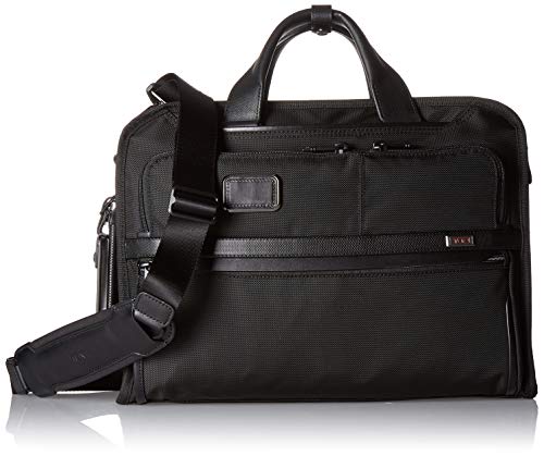 The TUMI Compact Large Screen Laptop Brief is the perfect accessory for commuters, students, and frequent business travelers. With its slim design and magnetic closure, this briefcase is both stylish and functional. The articulating shoulder strap and leather top carry handle ensure comfortable and secure carrying. It also features multiple organizer pockets for business cards, passports, pens, and more. Made with TUMI's signature Alpha 3 design, this laptop brief combines superior quality, design excellence, and technical innovation. The black color adds a touch of sophistication to any outfit. Dimensions of 33.00Lx9.00Wx44.50H make it suitable for laptops up to 17 inches. Customers rave about the durability, spaciousness, and stylish appearance of this bag.