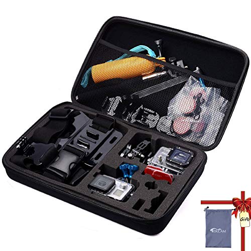 The TEKCAM Large Carrying Case is the perfect travel companion for your action camera. It is designed to keep your camera safe and sound from any potential outside dangers. The case features a durable and water-resistant nylon shell, with a high-density foam padded interior and perfectly shaped compartments for your camera and accessories. It also has a comfortable and supportive carry handle, making it easy to transport. The case is compatible with various action camera models, including GoPro Hero and AKASO EK7000. With its sleek, lightweight, and compact design, this case is a must-have for any adventurous traveler.