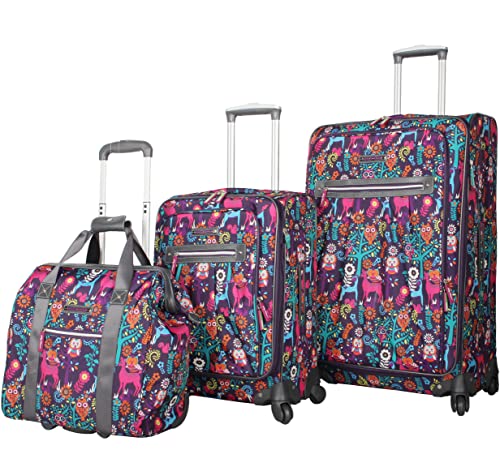 The Lily Bloom Luggage 3 Piece Softside Spinner Suitcase Set Collection is the perfect travel companion for those looking for style and functionality. With its vibrant Wildwoods Print, you'll be sure to stand out from the crowd. This set includes three suitcases of varying sizes, allowing you to pack for any length of trip. The softside construction makes these suitcases lightweight and flexible, while the spinner wheels ensure smooth maneuverability. With multiple interior and exterior pockets, organizing your belongings has never been easier. The suitcases also feature expandable compartments, providing extra space when needed. Made from durable materials, this set is built to withstand the rigors of travel. Travel in style with the Lily Bloom Luggage 3 Piece Softside Spinner Suitcase Set Collection!