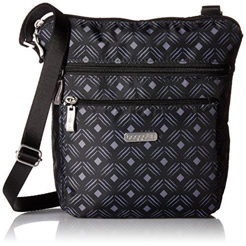 The Baggallini womens Cross Over Crossbody Bag is a lightweight and water-resistant travel purse designed to keep you organized while on the go. With its stylish design and convenient features, this bag is perfect for everyday use or travel. The bag features multiple exterior pockets for easy access to your belongings, an adjustable strap for versatile wearing options, and a removable RFID-protected phone wristlet to keep your credit cards and ID safe. Made from lightweight nylon material, this bag is comfortable to carry all day. It is also machine washable, making it easy to keep clean. The Baggallini womens Cross Over Crossbody Bag is the perfect companion for any traveler.