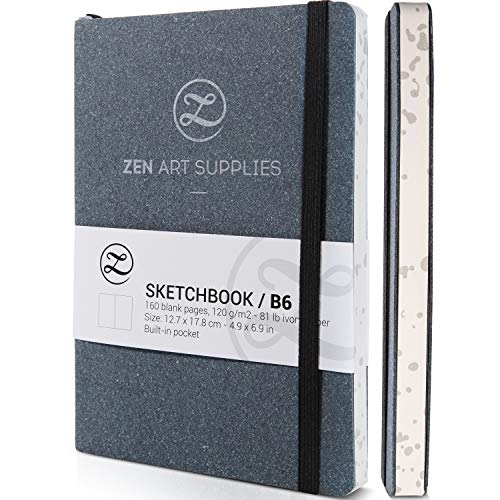The B6 Small Sketchbook for Drawing by ZenART is a high-quality art sketchbook that offers a smooth surface for drawing and is compatible with various dry and light wet media. With a soft and sturdy biodegradable leather cover, this sketchbook is resistant to water and easy to clean. It features handmade, sturdy binding for durability and includes practical features such as a 180° lay-flat design, inner pocket, bookmark ribbons, and elastic closure. The B6 size makes it portable and perfect for landscape/urban sketching while on-the-go. With a rating of 4.5/5 from customers, this sketchbook is praised for its design, size, and paper quality, although some users have noted concerns about the smell and paper thickness for certain mediums.