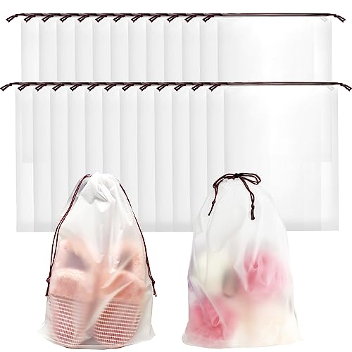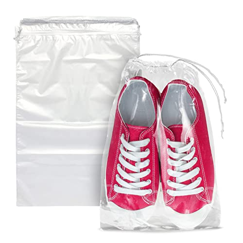 - Package Included: 100 pack 12×18 inch Transparent Shoe Bags for Travel with Cotton Draw Strings