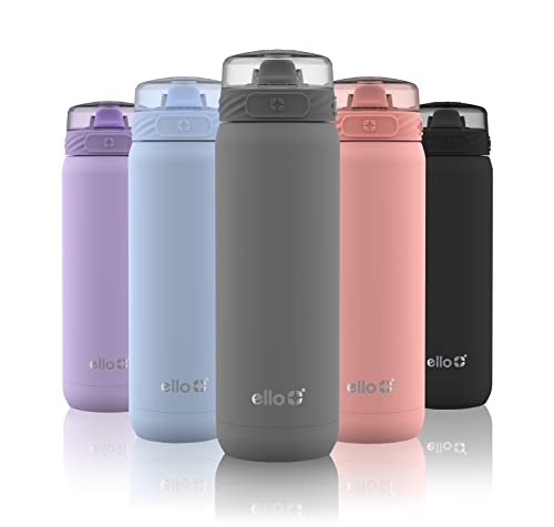 Stay hydrated on the go with the Ello Cooper Vacuum Insulated Stainless Steel Water Bottle. This 22oz bottle is designed to keep your drinks cold for up to 30 hours, perfect for long trips or hot summer days. The leak-proof lid with a silicone push button ensures that your bottle stays tightly sealed and mess-free. The easy-to-clean design allows you to disassemble the lid and place it in the dishwasher, while the hand wash recommended body prevents any damage. With a built-in carry loop, you can easily take this bottle on all your adventures or attach it to your backpack. It also fits perfectly in car cup holders and gym equipment. Choose the gray color for a sleek and stylish look.