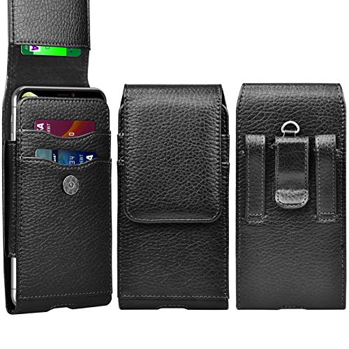 The WiDEORnate Heavy Duty Cell Phone Holster Pouch is a versatile accessory that provides convenience and protection for your smartphone. Made with premium PU leather and a soft microfiber inner lining, it keeps your device secure and safeguarded against scratches, dirt, and light rain splashes. The holster features a 360° rotatable belt clip, allowing you to wear it on your waistband in either a vertical or horizontal position, or simply place it in your trouser pocket. It also includes three card slots for holding ID cards, credit cards, business cards, keys, coins, and cash. With a magnetic closure, it provides quick and easy access to your phone. Compatible with various phone models, this holster is suitable for daily use, work, walking, running, riding, and fishing. Overall, it offers excellent quality and functionality to meet your travel accessory needs.