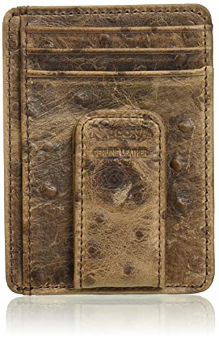 The Nocona Belt Co. Men's Nocona Brown Ostrich Magnet Money wallet is a stylish and functional accessory for travel. Made with a clear ID pocket and a leather interior, this wallet not only looks premium but also provides convenient storage for your essentials. The magnetic money clip ensures that your bills are safely secured without the risk of breaking. With its compact size and comfortable fit in the front pocket, this wallet is perfect for everyday use. However, some users have mentioned that the card slots are short, leaving the cards exposed. Overall, this wallet is highly recommended for its durability, good quality, and reliable magnetic money clip.